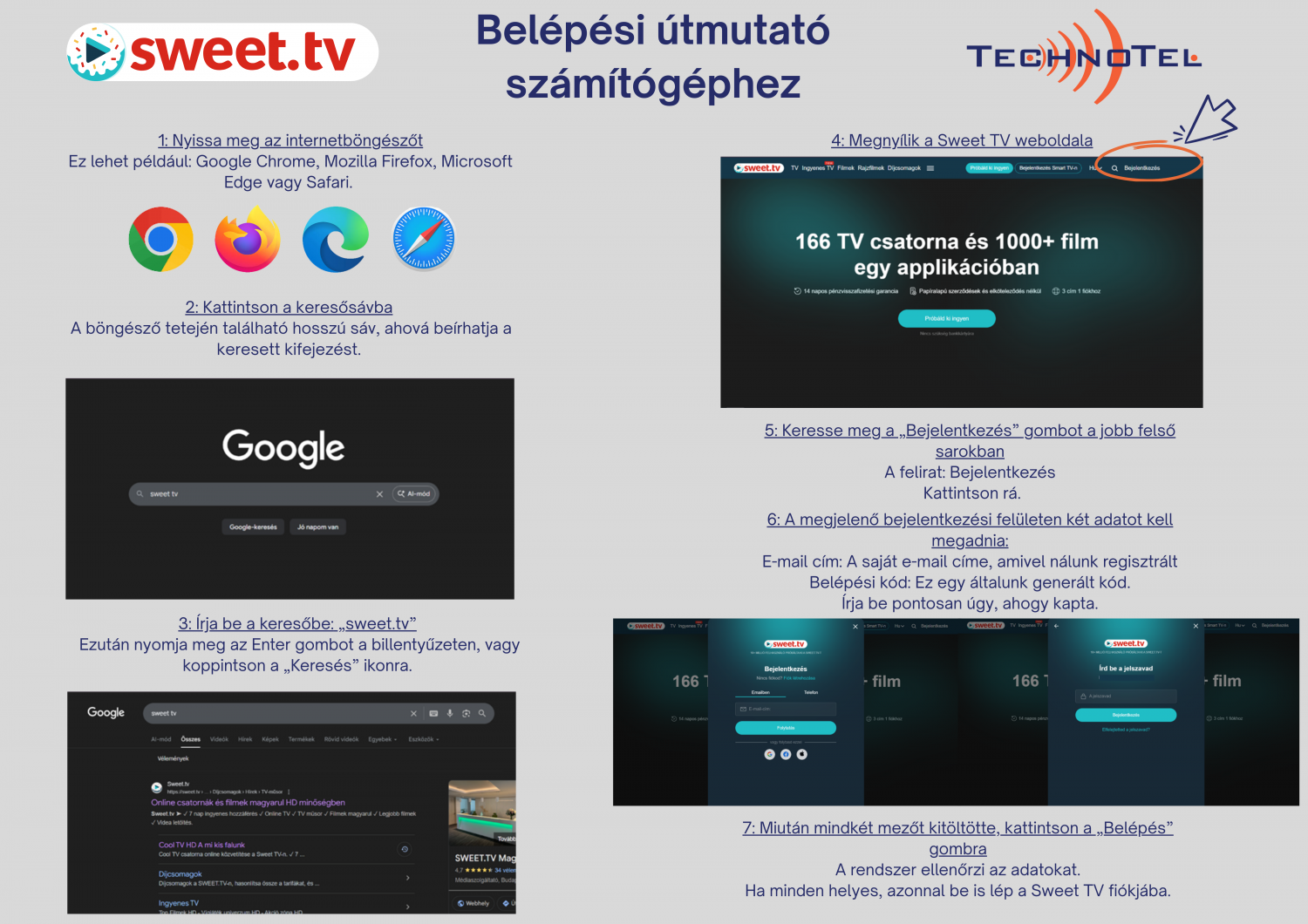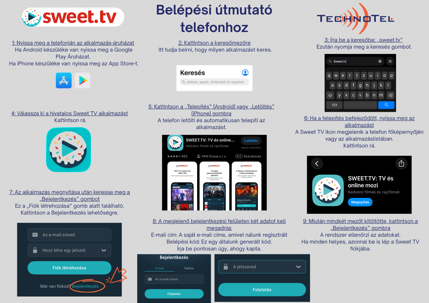 A kiegészítő online TV csomag használata minden okoseszközön könnyű és gyors. Kövesse az alábbi lépéseket a bejelentkezéshez: